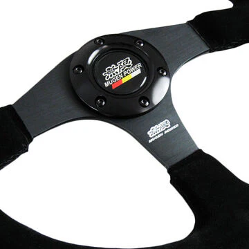 Create an impression when passengers come on board your souped-up vehicle with this 350mm MUGEN style steering wheel. Its dished design complements its classy Black stitching. Made from genuine suede leather and lightweight alloy for the spoke. It will no doubt create an impression!
