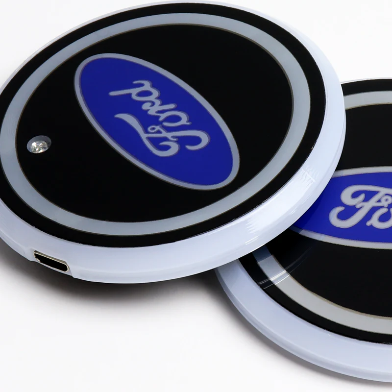 For FORD Switchable 7 Color LED Cup Holder Car Button Mat Atmosphere Light 2PCS