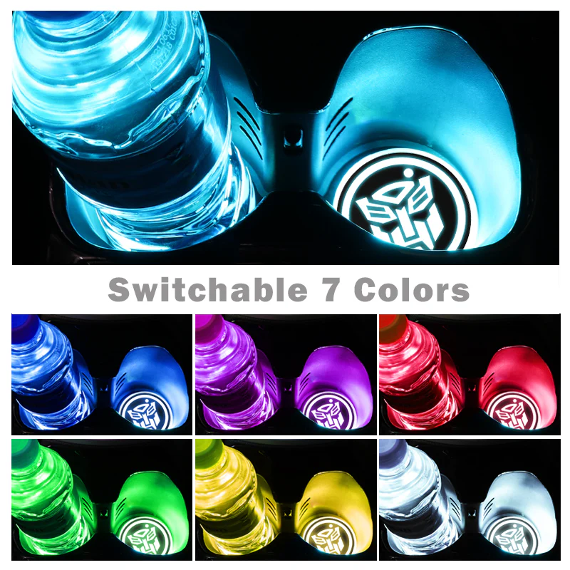 For TRANSFORMER Switchable 7 Color LED Cup Holder Car Button Mat Atmosphere Light 2PCS